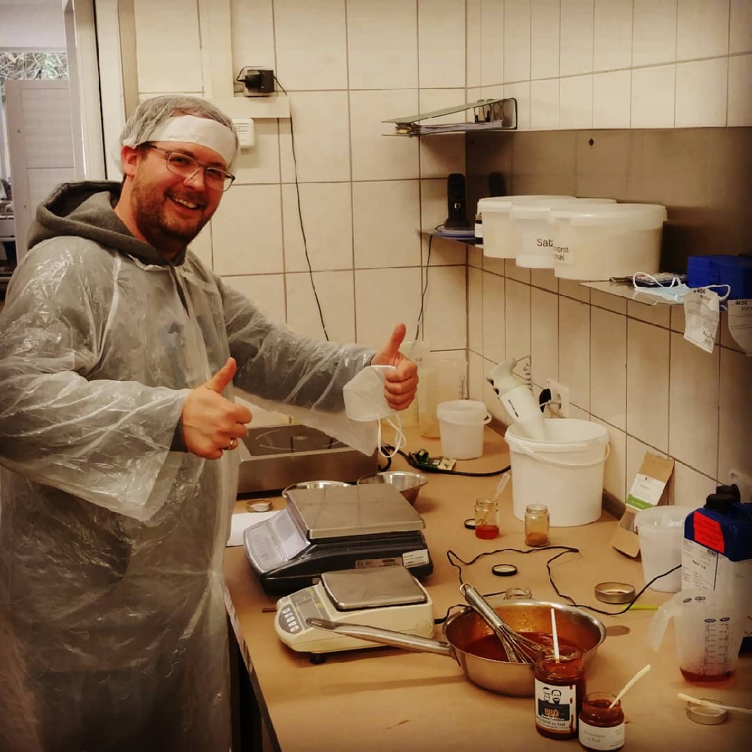 Diverse Reisen, Ideen, Kochversuche und Probierrunden später (Falks Kommentar „Und dann geben wir alles unter stetem Rühren in den Ausguss“ entwickelte sich zeitweise zu einem treuen Begleiter unserer unzähligen Versuche) brauchte es dann immerhin noch eine eineinhalb-jährige Elternzeit von Christian, um den Schritt zu wagen: „Lass uns doch mal schauen, ob wir nicht auch andere dafür begeistern können, zum Grillen nicht irgendeine Sauce zu nehmen, sondern was Gescheites!“ Und so gründeten wir die Bielefelder BBQ GbR und sind mittlerweile stolz darauf, vier Saucen und zwei Rubs auf den Markt gebracht zu haben, die nicht nur vielfältig und ehrlich sind, sondern auch noch geil schmecken. Von den vielen Ideen, die wir noch haben, ganz zu schweigen...